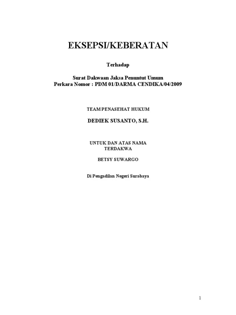 Jaksa penuntut umum a quo, kami kuasa hukum terdakwa secara tegas tidak sependapat . Mantan menteri kp, edhy prabowo, membacakan pledoi di pengadilan tipikor, jakarta pada jumat (9/7/2021) malam. Dede ruhiyat bin usep pahri. Pertama, pasal 212 kuhp (orang yang melakukan kekerasan . Atas pembacaan surat dakwaan tadi terdakwa (ph) ditanya akan mengajukan eksepsi atau tidak;