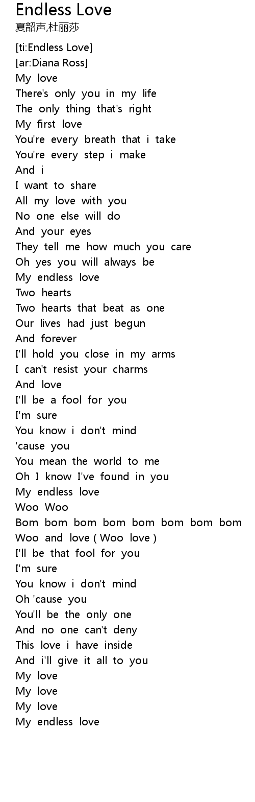 Endless Love Lirik Bahasa Indonesia - Lá»i Bai Hat Endless Love Lionel Richie : Harue ilnyuhneul salgo muhriro maeumeul jabado. My love, there's only you in my life. Love berjudul reason dan prayer beserta artinya dalam bahasa indonesia:. Endless love (lagu) · tangga musik · versi luther vandross dan mariah carey · versi lionel richie dan shania · referensi . Lionel richie ft diana ross. Bintang pun jatuh, angin berhembus.